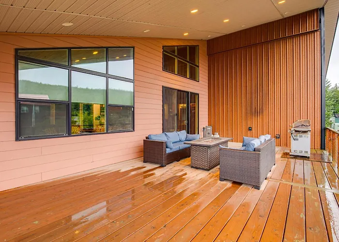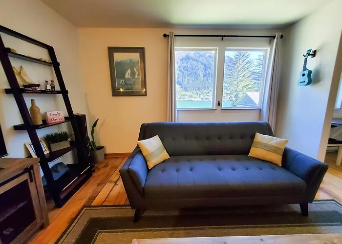 Cozy Retreat With Fire Pit - Near Mendenhall Glacier apartment is a spacious venue located in vicinity of Glacier Gardens Rainforest Adventure. There is a kitchen appointed with a microwave, a coffeemaker, and a refrigerator.
